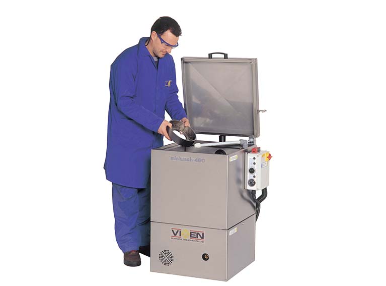 Das Modell Aquablast 915 ist die kleinste unserer serienmäßigen Nassstrahlmaschinen und besonders zum Entfetten und Nassstrahlen von Kleinteilen aller Art mit einem Drehtisch von maximal 600 mm Durchmesser geeignet.