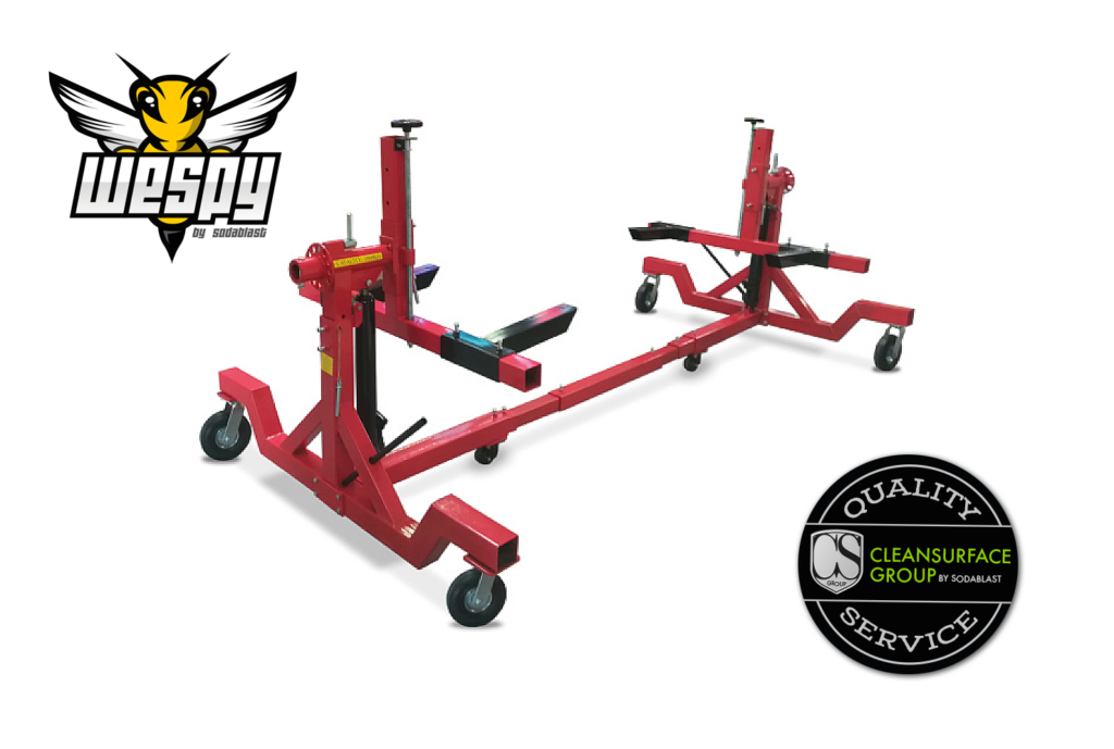 Met onze Wespy draaisbrug kan je een voertuig 360° kantelen. Hierdoor bereikt u gemakkelijk alle delen van het koetswerk die u wenst te lassen, zandstralen, schilderen, enz.